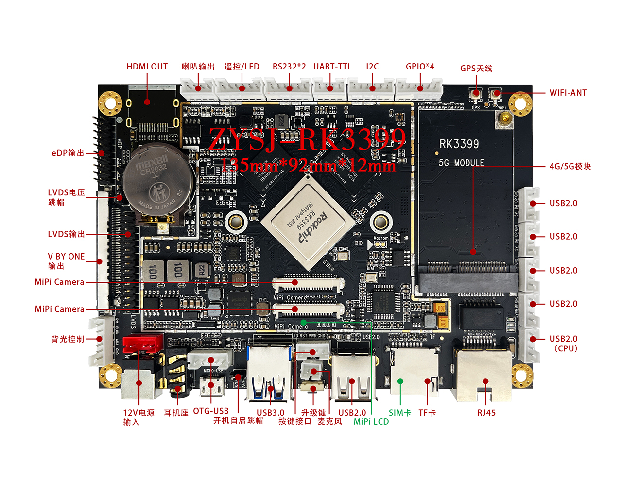 HDMI 输出、LVDS、eDP、MiPi、麦克风、重力感应、GPS 等等功能,大大简化了整